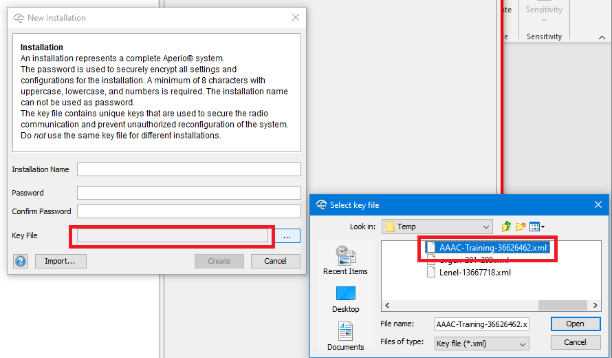- To select the Key File, browse to the folder where the key file is stored, and then choose Open to select it.