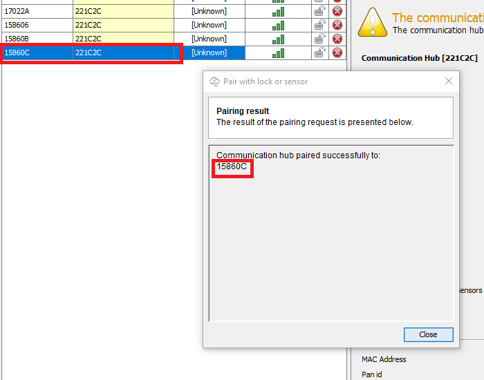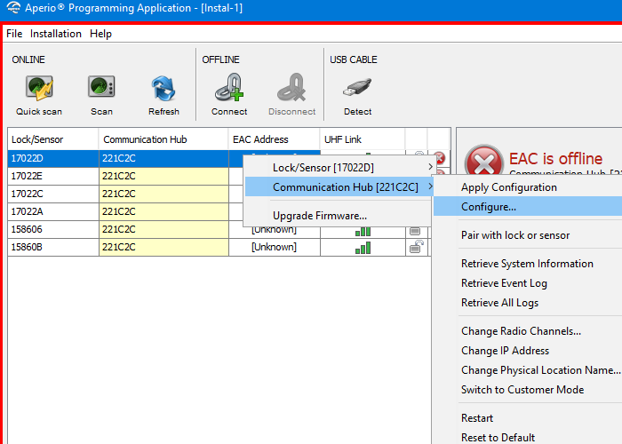 - To unpair the lock and hub, right-click on the lock, and then select Lock/sensor > Unpair lock/sensor from Communication Hub.