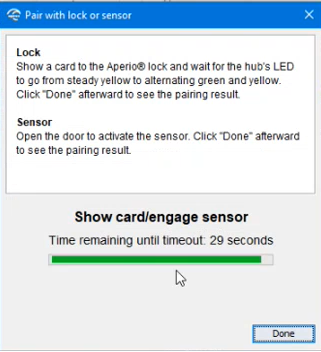 Power on the AH40 IP Hub or AH30 Hub, and Aperio wireless locks.