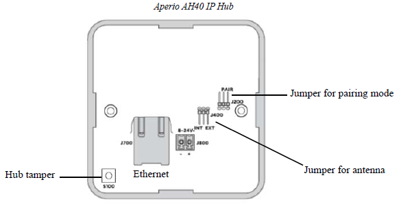 Set the address for the hub using DIP switches 1-4. For more information, refer to the Addressing Table in the Aperio Reference Manual.