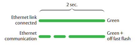 The Ethernet LED on the Aperio IP communication hub indicates both the status of the Ethernet link level and if communication is ongoing.