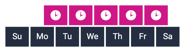 Visualization: The clock icon indicates intervals when the schedule runs. Note that the icons cross days.
