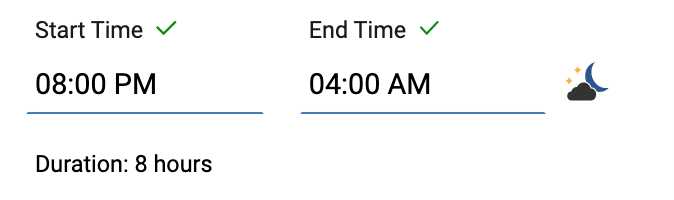 Here are examples and visual aids of a time interval that is scheduled to cross midnight.