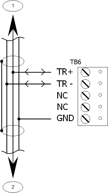 - RS-485 signaling requires two 2-conductor cables. Use one (1) cable for power (18 AWG) and one (1) cable for communication (24 AWG, with drain wire and shield).