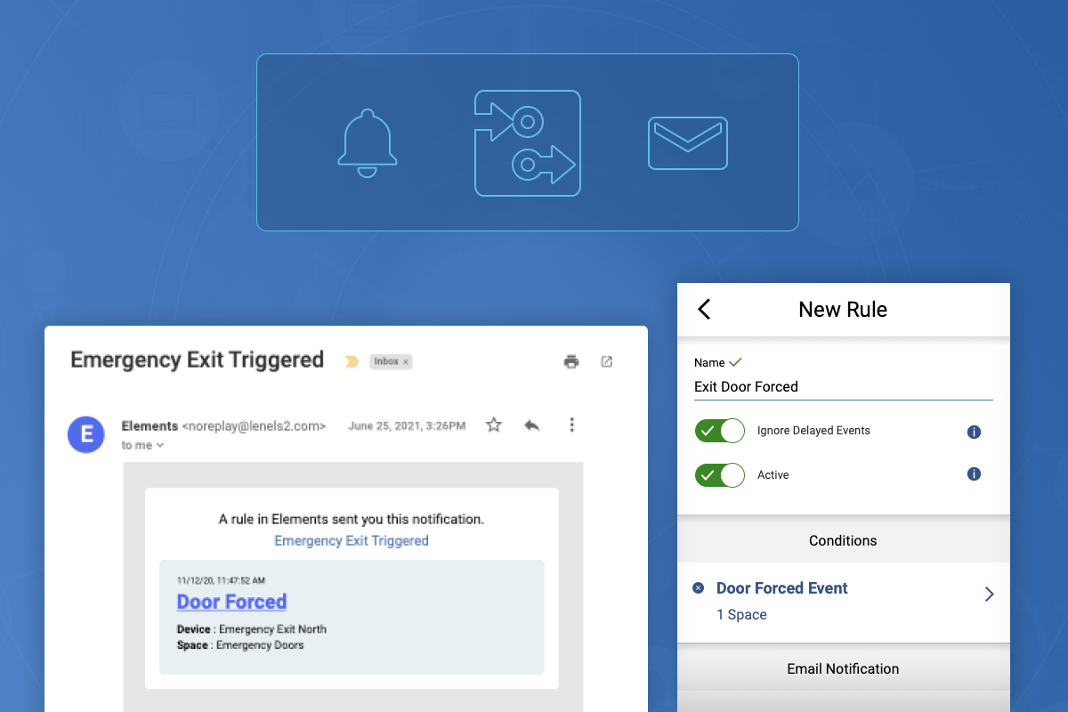 Filter on multiple criteria, such as event type, severity, people, spaces, devices, or schedule for the conditions to send email notifications