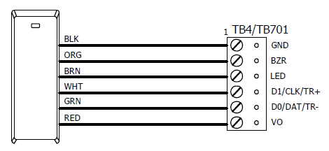 Note: The input power is passed through to the reader terminal strip and is available for powering a reader. Readers that require different voltage requirements must be powered separately. Care must be taken to insure the input voltage is within the voltage range of the reader. The reader power output terminal, TB4-6/TB701-6 (VO), is not current-limited.